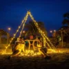El escenario se ilumina con la suave luz de las antorchas y la luna reflejada en las aguas cristalinas del Caribe, creando un ambiente íntimo y mágico. Sumérgete en la comodidad de nuestras mesas en la arena, adornadas con elegancia y sutileza, mientras el sonido suave de las olas y la música ambiental crean la sinfonía perfecta para tu velada